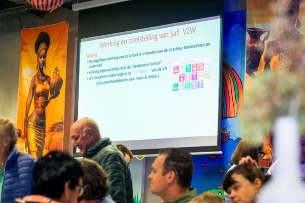 Daarnaast organiseren ze een SDG-bingo, wat zorgde voor een leuke afwisseling en een mooie extra opbrengst. Ook de verkoop van fairtradeproducten, die de organisatie grotendeels zelf meebrengen uit Afrika – van handgeweven manden tot kleurrijke sieraden – bracht extra middelen op voor het project. Een van de leden van vzw schildert bovendien prachtige taferelen van Gambia en portretten van kinderen van de Seidemann School. Deze unieke kunstwerken worden tijdens de avond verkocht en vallen erg in de smaak bij het publiek.