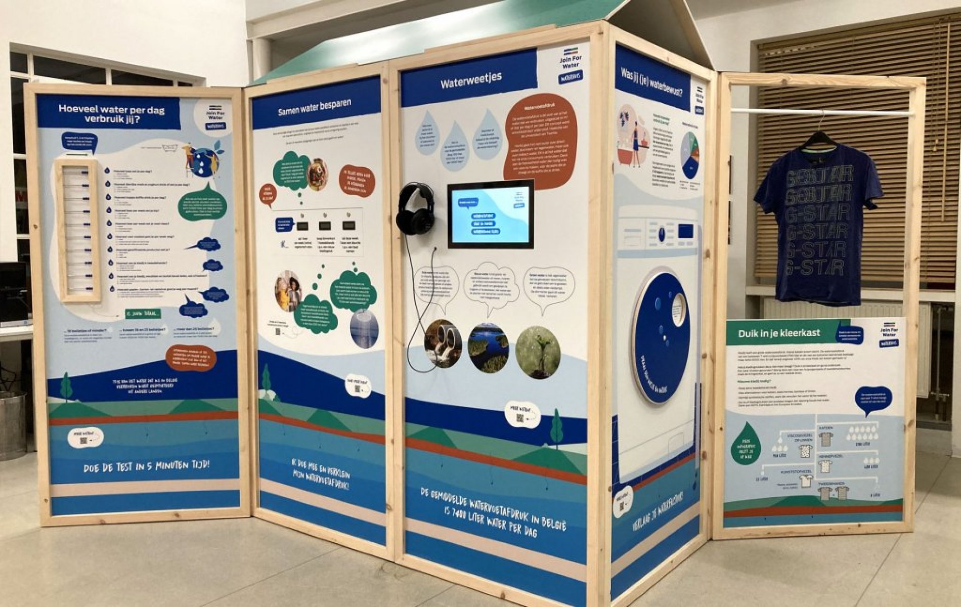 In het Waterhuis, een informatieve stand op de bovenverdieping van het Sportpark, kon je leren waarvoor water allemaal gebruikt wordt. Op een leesbare manier leer je hoe het zit met water binnen de landbouw, in de textiel, hoe je op een duurzame manier groenten kan telen,.... Door de samenwerking met de NGO Join for Water werd ook duidelijk welke invloed ons waterverbruik heeft in een mondiale context. Daardoor werden ook duidelijke linken gelegd naar de Duurzame Ontwikkelingsdoelstellingen (SDG's) van de VN. Een spreker van Osafi vertelde hoe zij in Congo het probleem van zuiver water aanpakken via waterfiltersystemen en welke voordelen daar allemaal aan verbonden zijn.