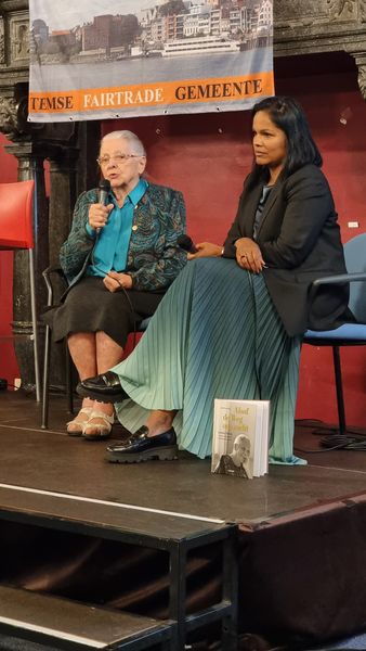 “Het thema “Slavenhandel in huisarbeid in India en de wereld” vat heel goed haar levensdoel samen”, aldus Els Vercouteren van de Trekkersgroep. “De impact van haar werk kan niet onderschat worden. Jeanne ging die avond in dialoog met Julie Hendrickx, haar nichtje en rechterhand. Julie is ambassadeur van de National Domestic Workers’ Movement (NDWM) en is zelf van Indische afkomst. Ze volgt en steunt Jeanne heel gedreven in haar werk en schreef hier over in haar boek ‘Alsof de weg ons zocht”.