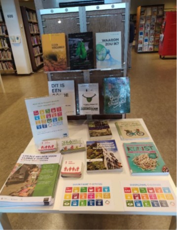 De bibliotheek van Sint-Niklaas zorgt een aantal keer per jaar voor thematafels op een centrale plek in de bib. Dit kan gaan over de jeugdboekenmaand of de poëzieweek, maar dit jaar maakten ze ook een thematafel rond de Black History Month en tijdens de Week van de Duurzame Gemeente hebben ze (in samenwerking met het team internationale samenwerking) een tafel geplaatst rond de SDG’s.